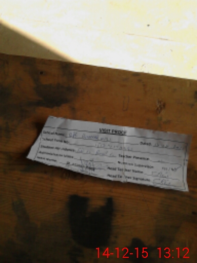 | Total no. of Classrooms: 2 No. of Classrooms Used for Teaching: 0 No. of Classrooms Storing Old Furniture, FTBs, etc: 0Comments if Any: BOTH CLASS ROOMS DANGEROUS |