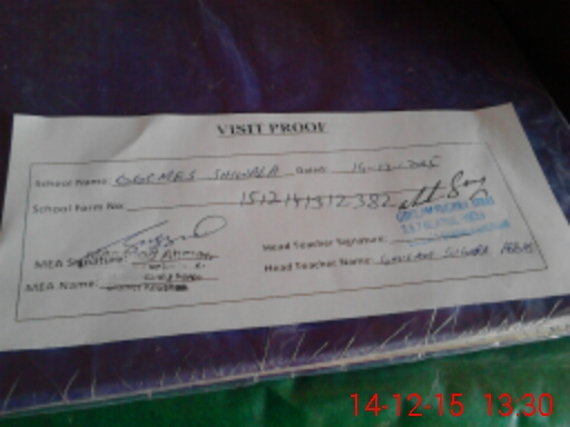 | Attendance Register | Head Teacher | MEA with School | Visit Proof |