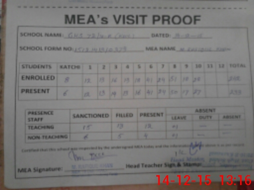 | Certified that this School was Inspected by the Undersigned MEA/DMO Today and the Information Stated Above is as Per Record. | |||||