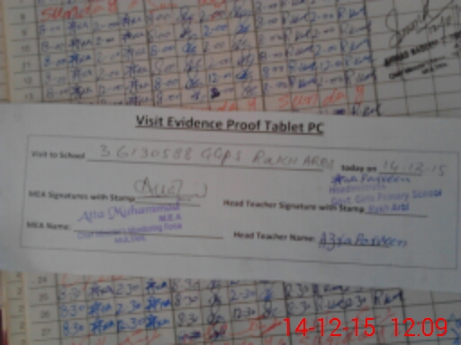 | Attendance Register | Head Teacher | MEA with School | Visit Proof |