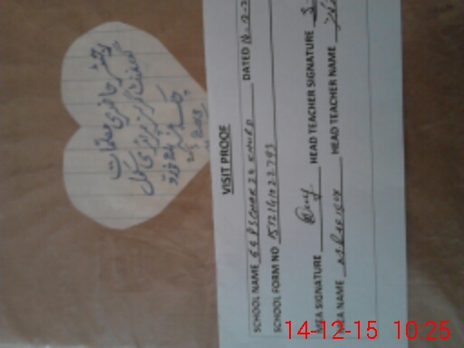 | School Visited by School Health & Nutrition Supervisor (No. of Visits) | 1 | Name1: | Sardar Abdul Qayyum | Name2: | |