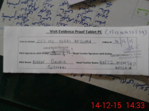 | Attendance Register | Head Teacher | MEA with School | Visit Proof |