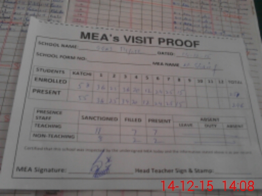 | Attendance Register | Head Teacher | MEA with School | Visit Proof |