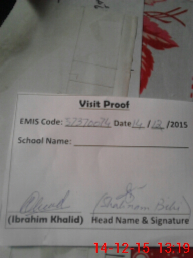 | School Visited by School Health & Nutrition Supervisor (No. of Visits) | 1 | Name1: | Usman Ghani | Name2: | |