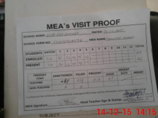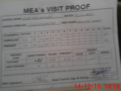 | Attendance Register | Head Teacher | MEA with School | Visit Proof |