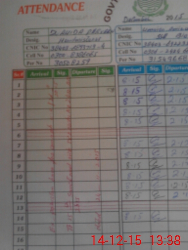 | CNIC | Full Name | Designation | R/C | Absence During Last Calender Month |