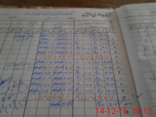 | CNIC | Full Name | Designation | R/C | Absence During Last Calender Month |