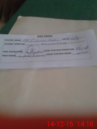 | Attendance Register | Head Teacher | MEA with School | Visit Proof |
