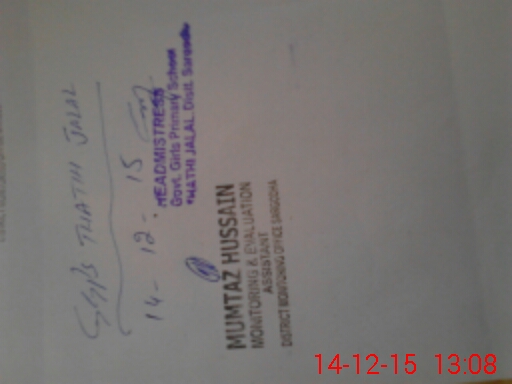 | District: SARGODHA | Tehsil: SAHIWAL | Markaz: THATTI JALAL - FEMALE | Level: Primary | |