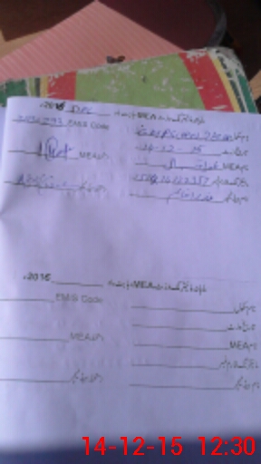 | Monitoring Date: 14-12-2015 | Start Time: 14-12-2015 11:48 AM | End Time: 14-12-2015 12:38 PM | Name of MEA: Za**** Iq**** BN**** | |