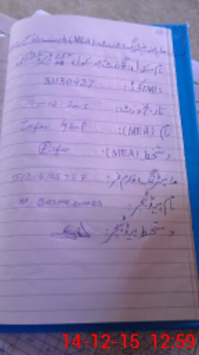 | Monitoring Date: 14-12-2015 | Start Time: 14-12-2015 12:42 PM | End Time: 14-12-2015 01:04 PM | Name of MEA: Za**** Iq**** BN**** | |