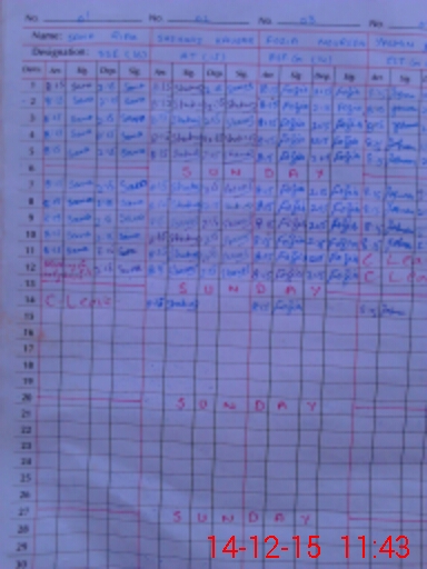 | CNIC | Full Name | Designation | R/C | Absence During Last Calender Month |