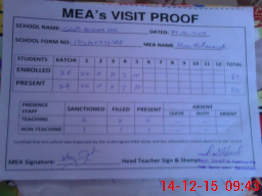 | Certified that this School was Inspected by the Undersigned MEA/DMO Today and the Information Stated Above is as Per Record. | |||||