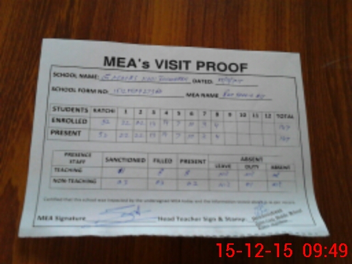 | Attendance Register | Head Teacher | MEA with School | Visit Proof |