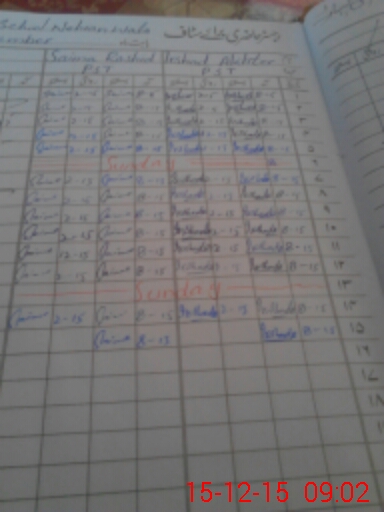 | Monitoring Date: 15-12-2015 | Start Time: 15-12-2015 08:47 AM | End Time: 15-12-2015 09:09 AM | Name of MEA: SH**** AL**** ZI**** (R**** | |