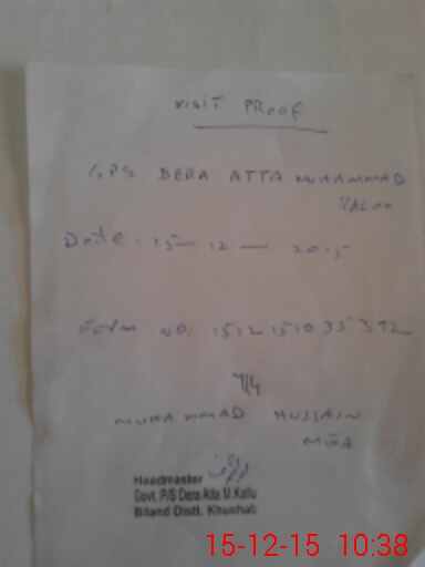 | EMIS Code: 38220038 | Name of School: GPS DERA ATTA MUHAMMAD KALOO | |||