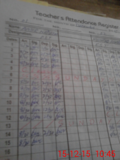 | Attendance Register | Head Teacher | MEA with School | Visit Proof |