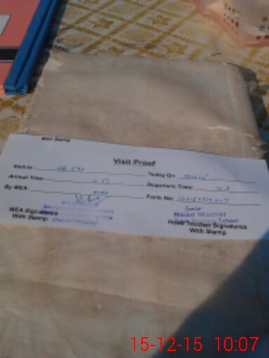| Monitoring Date: 15-12-2015 | Start Time: 15-12-2015 09:39 AM | End Time: 15-12-2015 10:08 AM | Name of MEA: Wa**** Ah**** (R**** | |