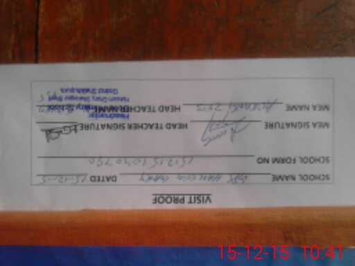 | Attendance Register | Head Teacher | MEA with School | Visit Proof |