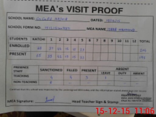 | Attendance Register | Head Teacher | MEA with School | Visit Proof |