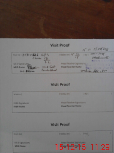 | Attendance Register | Head Teacher | MEA with School | Visit Proof |