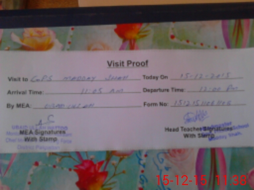 | Attendance Register | Head Teacher | MEA with School | Visit Proof |