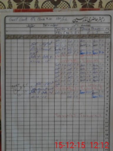 | CNIC | Full Name | Designation | R/C | Absence During Last Calender Month |