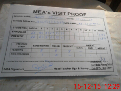 | Attendance Register | Head Teacher | MEA with School | Visit Proof |