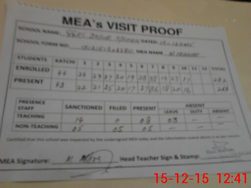 | Attendance Register | Head Teacher | MEA with School | Visit Proof |