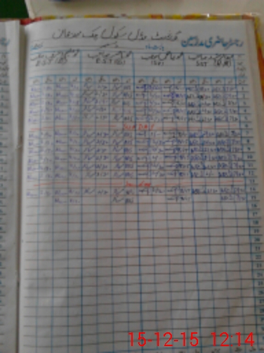 | CNIC | Full Name | Designation | R/C | Absence During Last Calender Month |