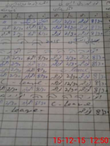 | CNIC | Full Name | Designation | R/C | Absence During Last Calender Month |