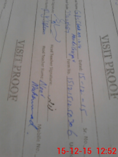 | School Visited by School Health & Nutrition Supervisor (No. of Visits) | 1 | Name1: | Rashda | Name2: | Lateef |
