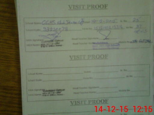 | Attendance Register | Head Teacher | MEA with School | Visit Proof |