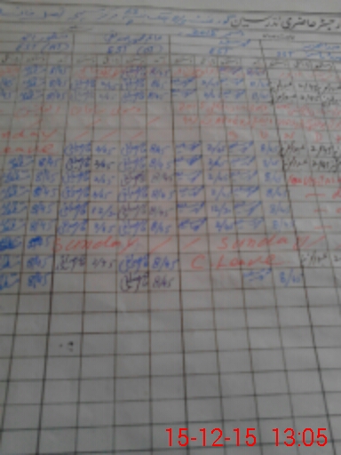 | Monitoring Date: 15-12-2015 | Start Time: 15-12-2015 12:36 PM | End Time: 15-12-2015 01:10 PM | Name of MEA: Za**** Hu**** | |