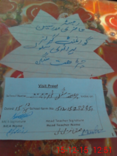 | School Visited by School Health & Nutrition Supervisor (No. of Visits) | 1 | Name1: | SAFIA YASMEEN | Name2: | |