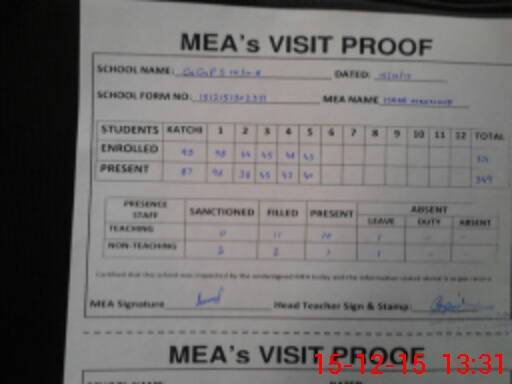 | Attendance Register | Head Teacher | MEA with School | Visit Proof |