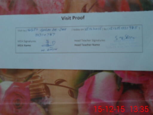 | Attendance Register | Head Teacher | MEA with School | Visit Proof |