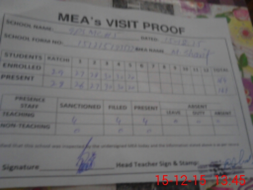 | Certified that this School was Inspected by the Undersigned MEA/DMO Today and the Information Stated Above is as Per Record. | |||||