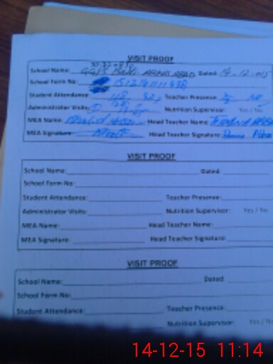 | Attendance Register | Head Teacher | MEA with School | Visit Proof |