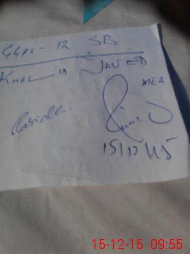 | Monitoring Date: 15-12-2015 | Start Time: 15-12-2015 09:43 AM | End Time: 15-12-2015 09:55 AM | Name of MEA: KH**** JA**** (R**** | |