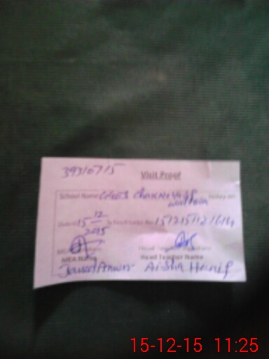 | School Visited by School Health & Nutrition Supervisor (No. of Visits) | 1 | Name1: | HAFIZ IMTIAZ | Name2: | NIL |