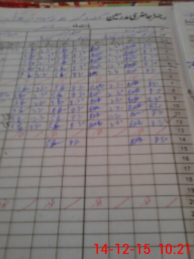 | Monitoring Date: 14-12-2015 | Start Time: 14-12-2015 09:41 AM | End Time: 14-12-2015 10:22 AM | Name of MEA: Al**** Hu**** BN**** | |
