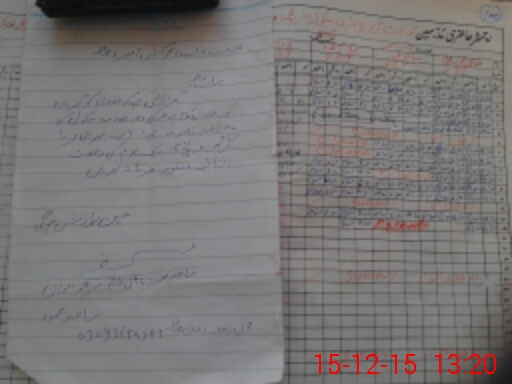 | Name: KH**** ME**** BH**** Designation: (School Headmaster's/Headmistress's) PST/PTC/JV Phone/Cell Number: 03**** |
