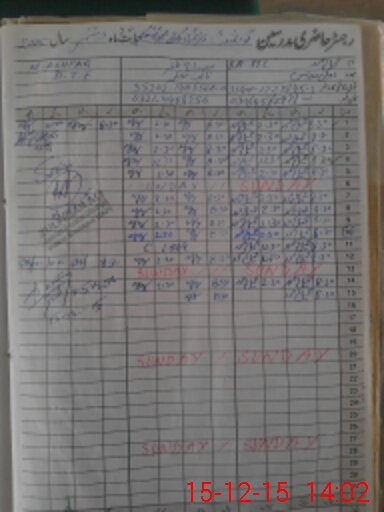 | CNIC | Full Name | Designation | R/C | Absence During Last Calender Month |