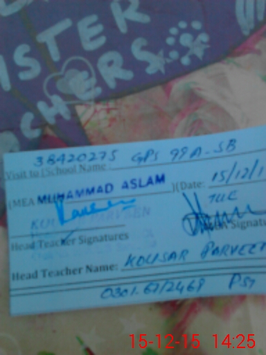 | Name: KA**** PE**** Designation: (School Headmaster's/Headmistress's) PTC/JV Phone/Cell Number: 03**** |