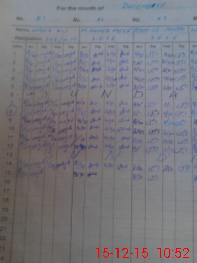 | Monitoring Date: 15-12-2015 | Start Time: 15-12-2015 10:01 AM | End Time: 15-12-2015 10:52 AM | Name of MEA: MA**** HU**** (R**** | |
