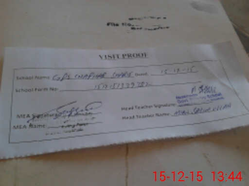 | Attendance Register | Head Teacher | MEA with School | Visit Proof |