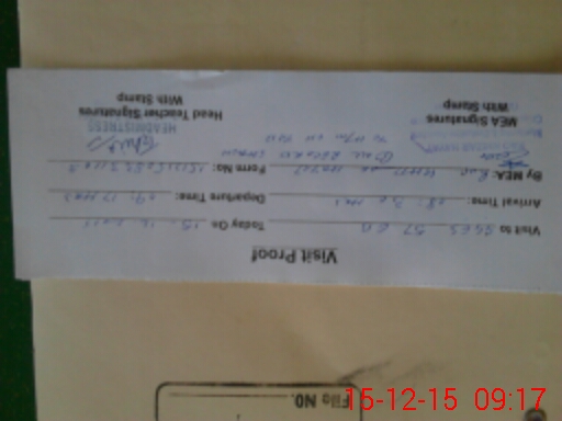 | Monitoring Date: 15-12-2015 | Start Time: 15-12-2015 08:33 AM | End Time: 15-12-2015 09:19 AM | Name of MEA: Kh**** Ha**** (R**** | |