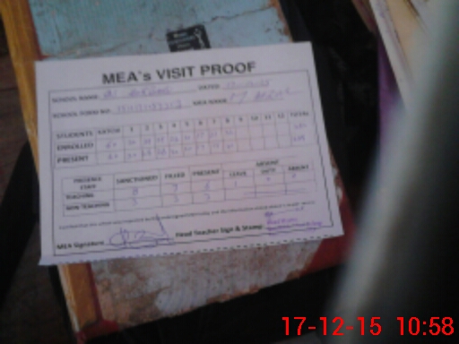| Attendance Register | Head Teacher | MEA with School | Visit Proof |
