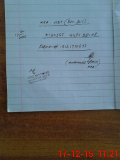 | Monitoring Date: 17-12-2015 | Start Time: 17-12-2015 10:58 AM | End Time: 17-12-2015 11:21 AM | Name of MEA: Mu**** Am**** BN**** 04 | |